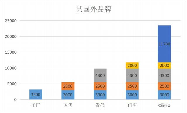 从价值链的角度分析,越来越多的厂家会选择直接和门店达成合作,省去所谓“国代”,“省代”等中间商,由下图可以看到,C 端消费者最终买单的价值和出厂价差额巨大。